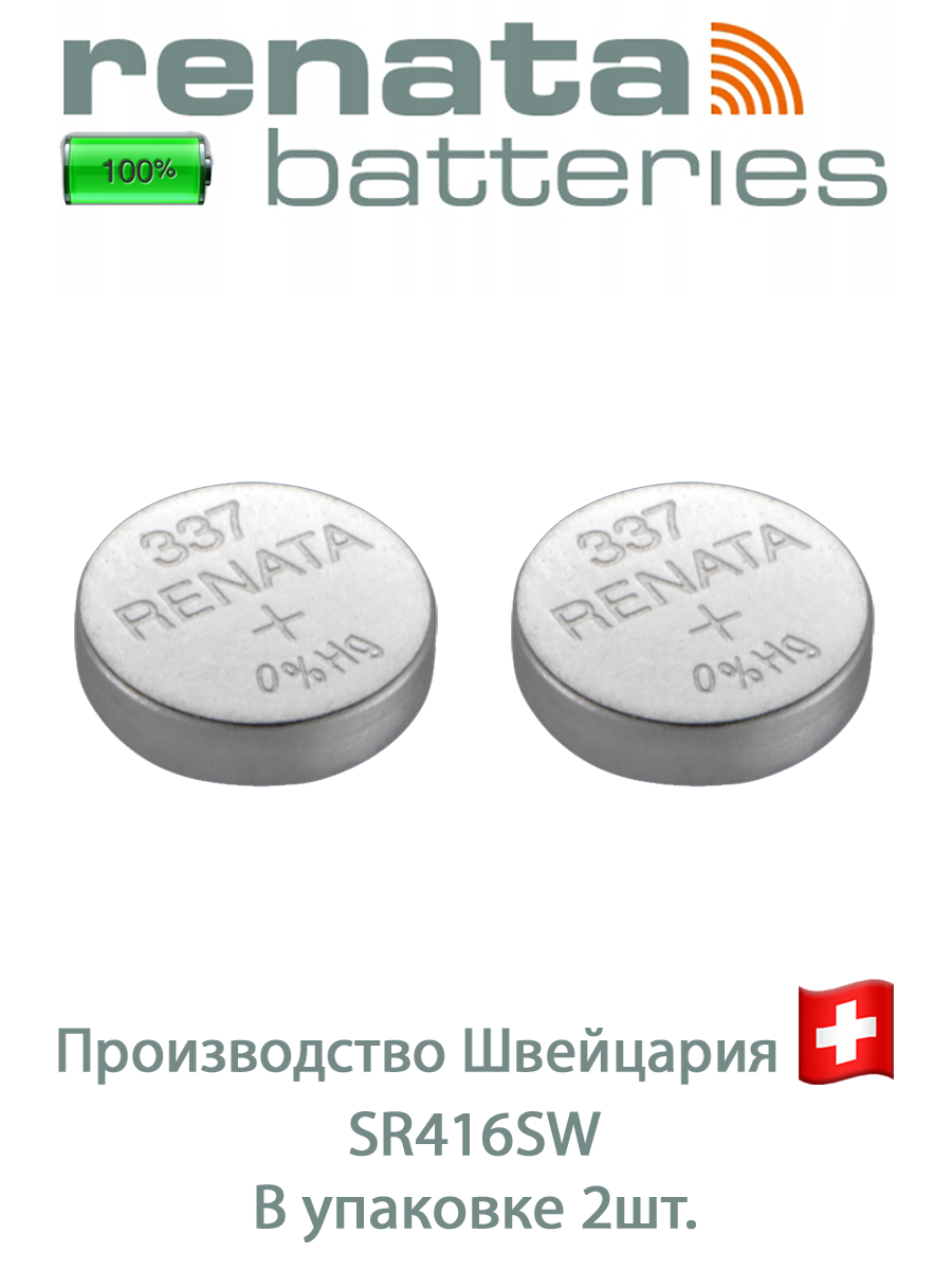 10 цен на Батарейка Renata 337 2шт/Элемент питания рената 337 В10 (SR416SW)(без ртути) 2шт
