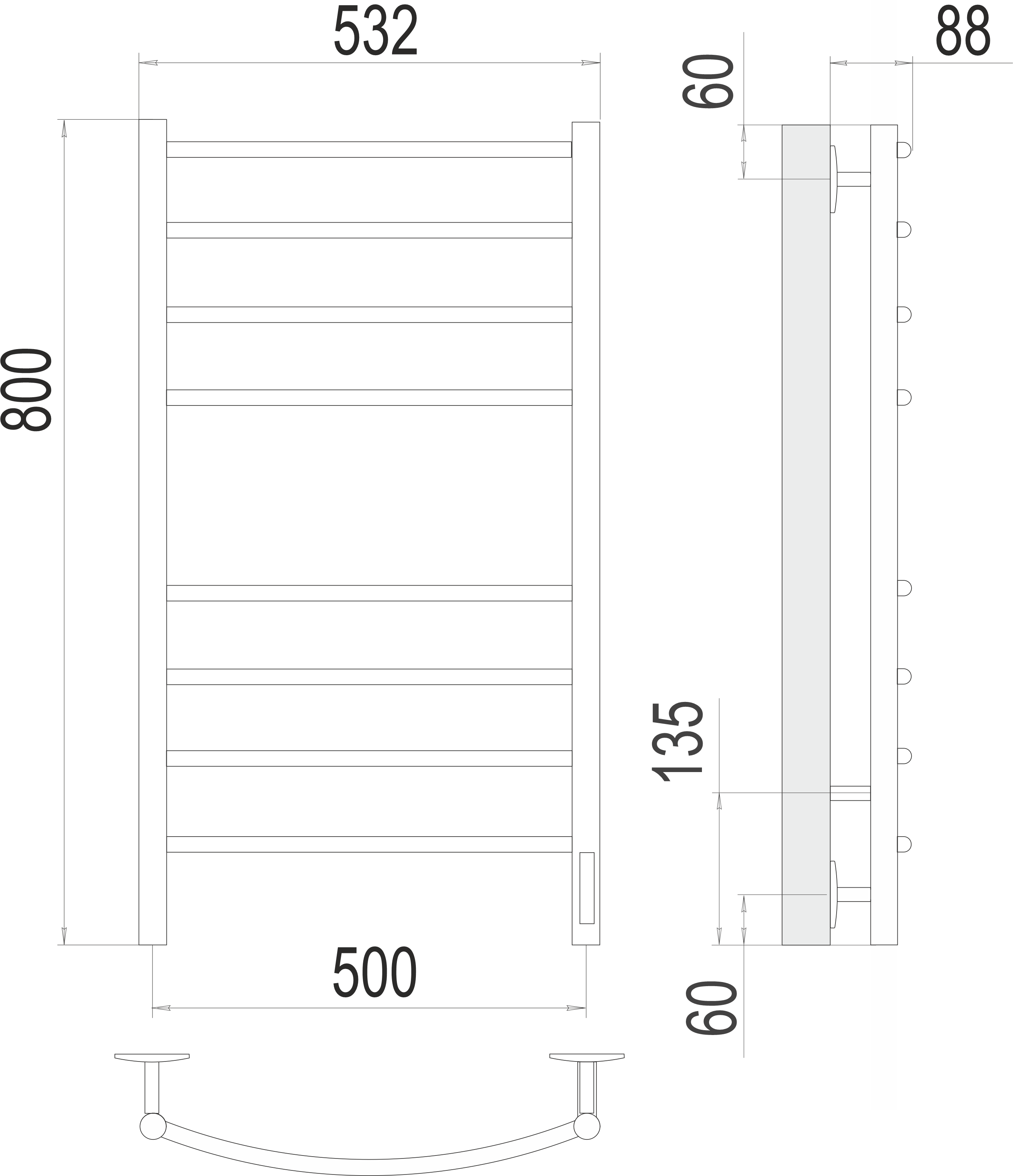 Полотенцесушитель электрический Terminus Классик П8 500х800 белый матовый информация: