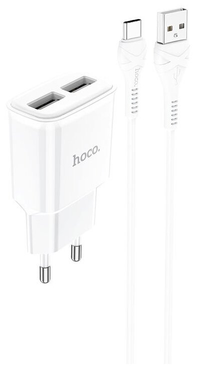 Сетевое зарядное устройство HOCO C88A Star 2xUSB с Кабелем USB - Type-C, 2.4A, 10.8W, белый 400 ₽
