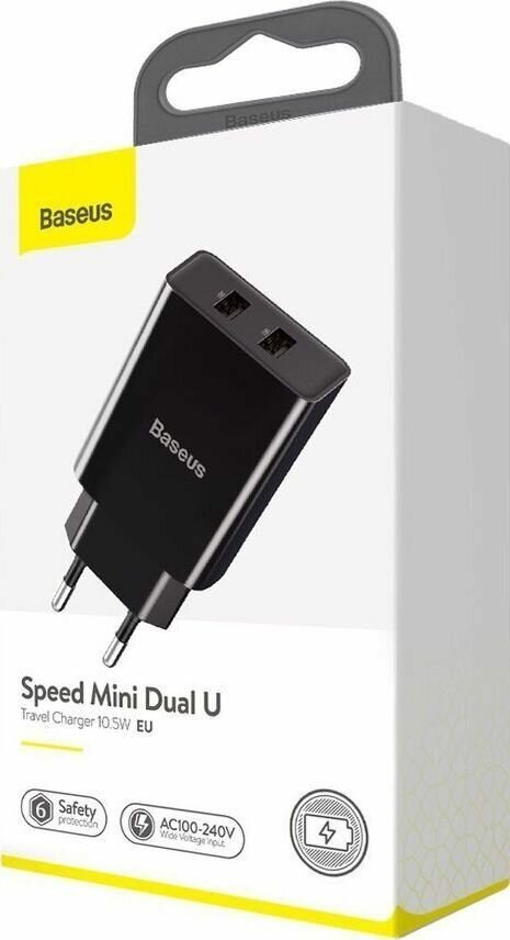 Сетевое зарядное устройство Baseus Speed Mini Dual U Charger 10.5W (CCFS-R01, CCFS-R02) EU (black)
