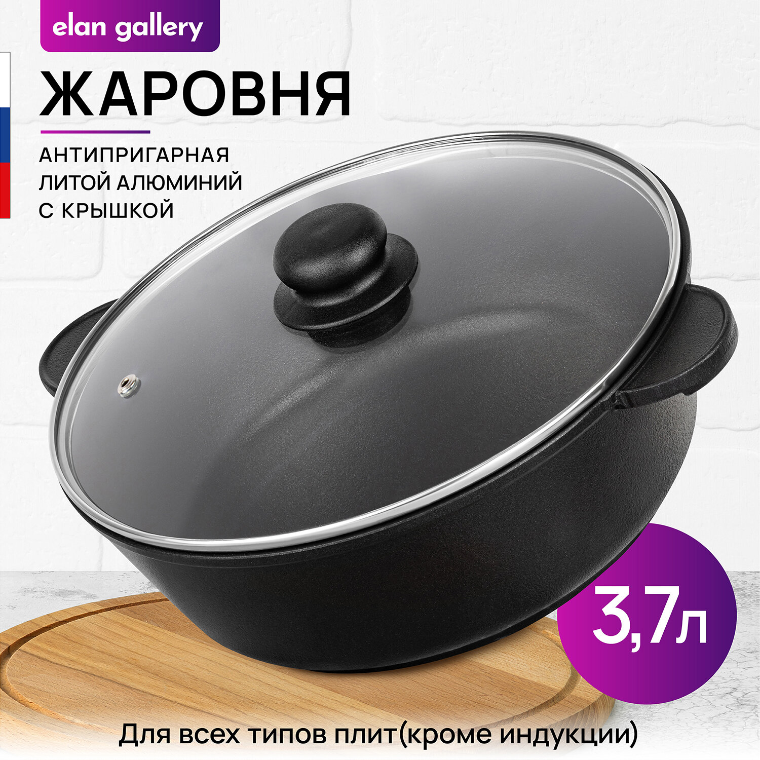 Жаровня-сотейник 3,7 л 26 см Elan Gallery гармония вкуса Черный Оникс с крышкой D26 информация: