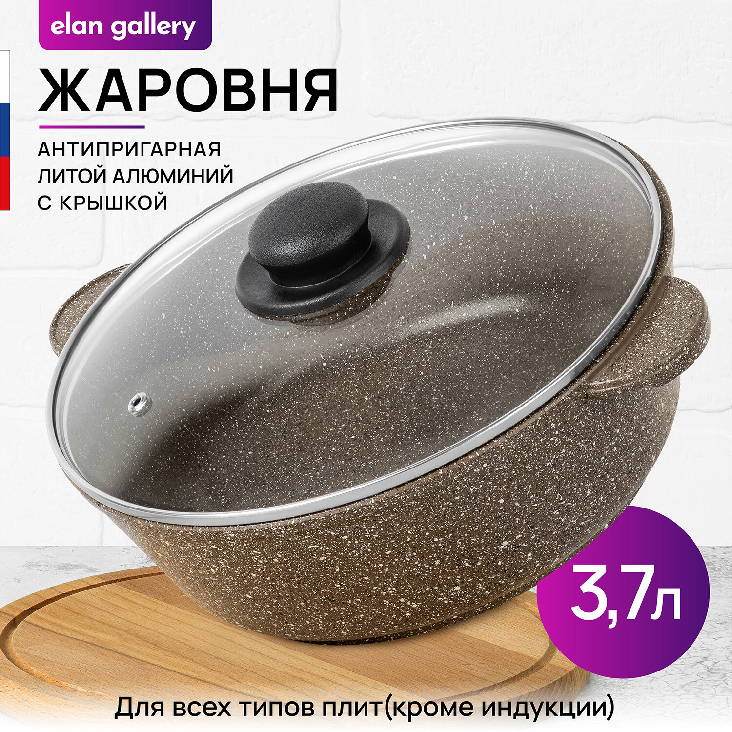 Жаровня-сотейник 3,7 л 26 см Elan Gallery гармония вкуса Коричневый опал с крышкой D26 информация: