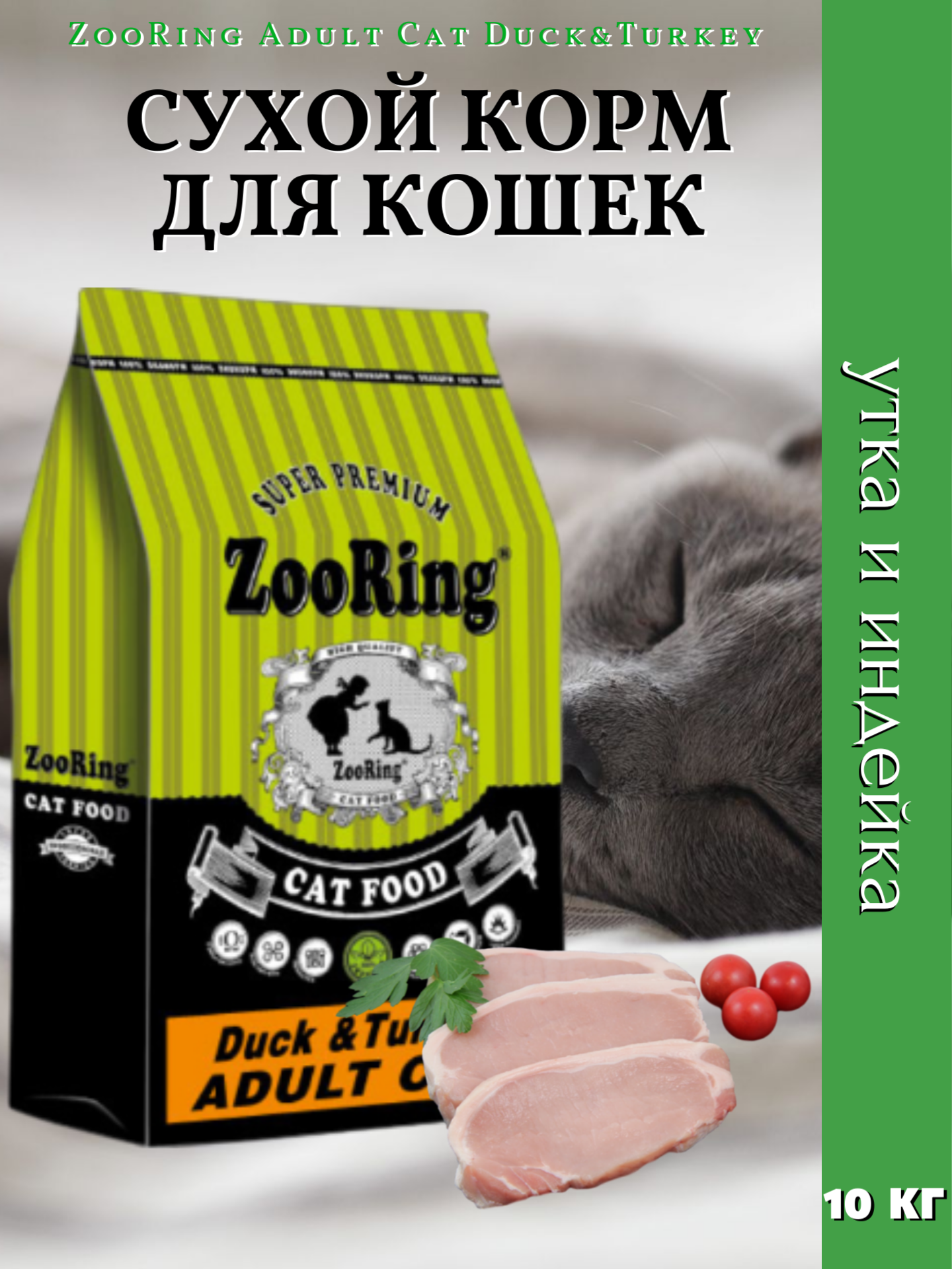 ZooRing Adult Cat Duck&Turkey, Сухой корм для кошек, Утка / Индейка 10кг информация: