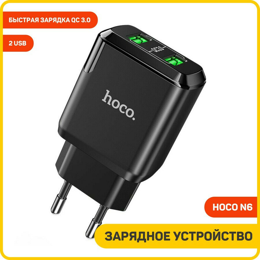 Сетевое зарядное устройство Hoco N6, 18 Вт, 2 USB QC30 - 3 А, черный