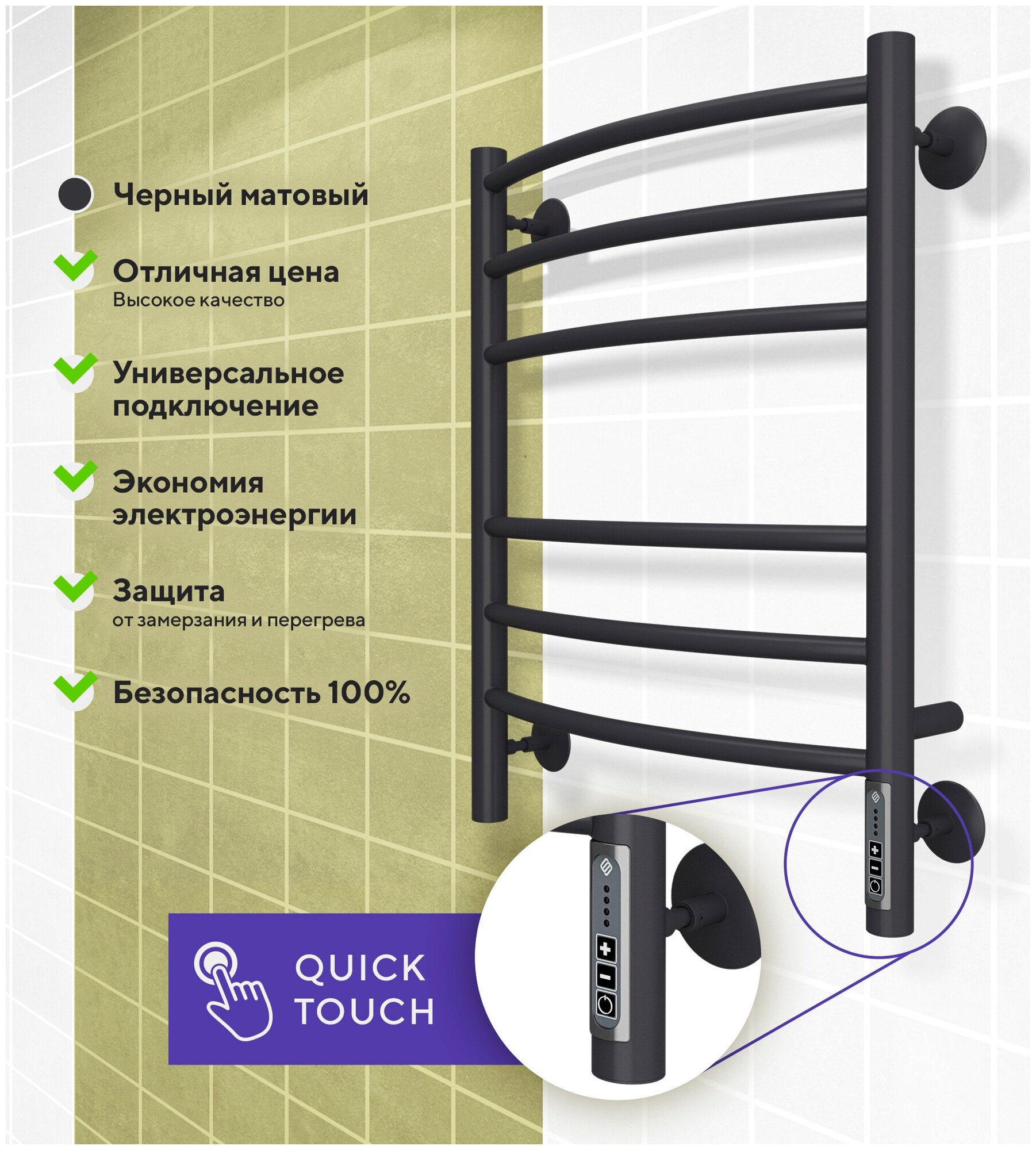 Отзывы на Полотенцесушитель электрический c терморегулятором черный матовый Терминус / Terminus Классик 482 мм 600 мм форма Лесенка