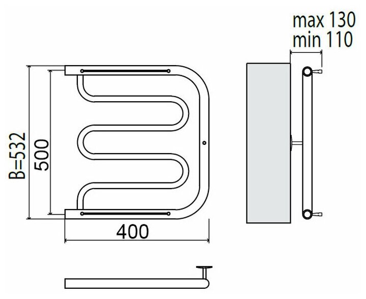 TERMINUS Полотенцесушитель электрический Terminus Хендрикс П6 500x596, ТЭН HT-1 300W, левый/правый