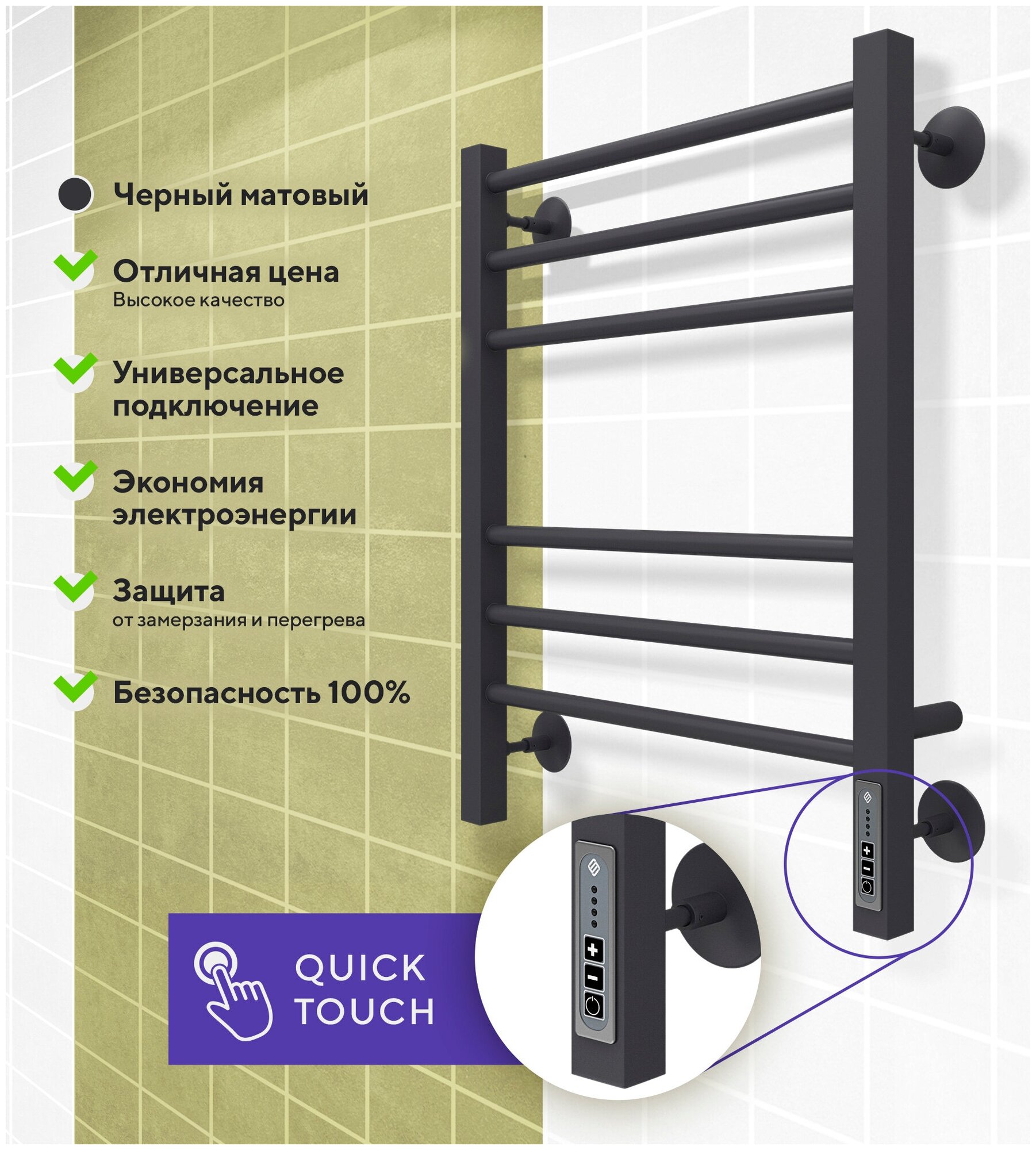 Отзывы на Полотенцесушитель электрический с терморегулятором черный матовый Терминус / Terminus Сицилия 482 мм 600 мм форма Лесенка