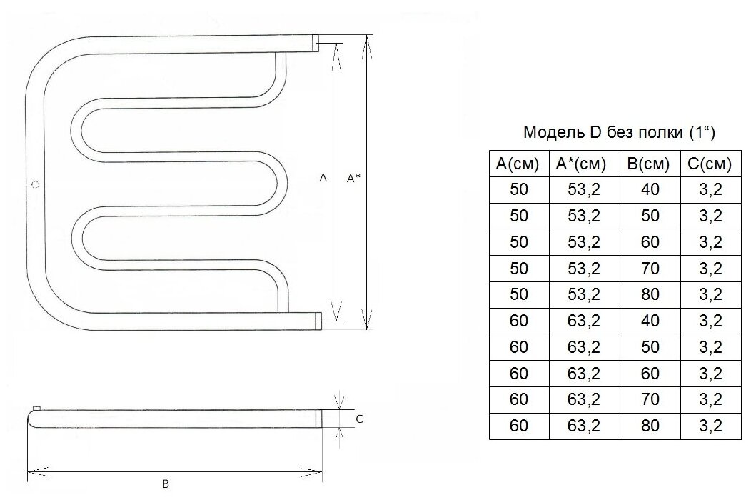 Водяной полотенцесушитель двин «D» без полочки, Полированный, (1") 50/60 информация: