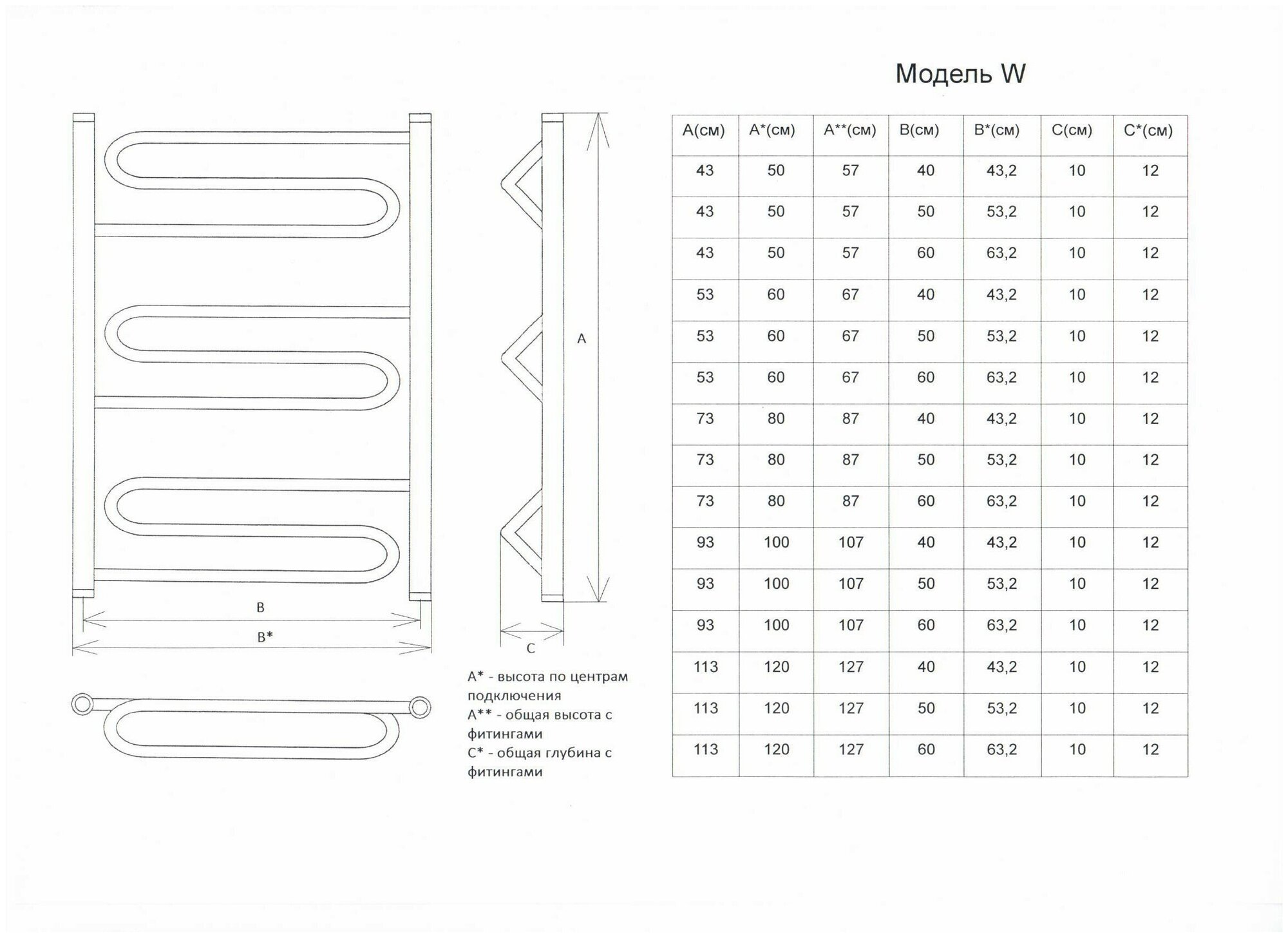 Водяной полотенцесушитель двин «W», Полированный, w8 (1" - 1/2) 80/50 информация:
