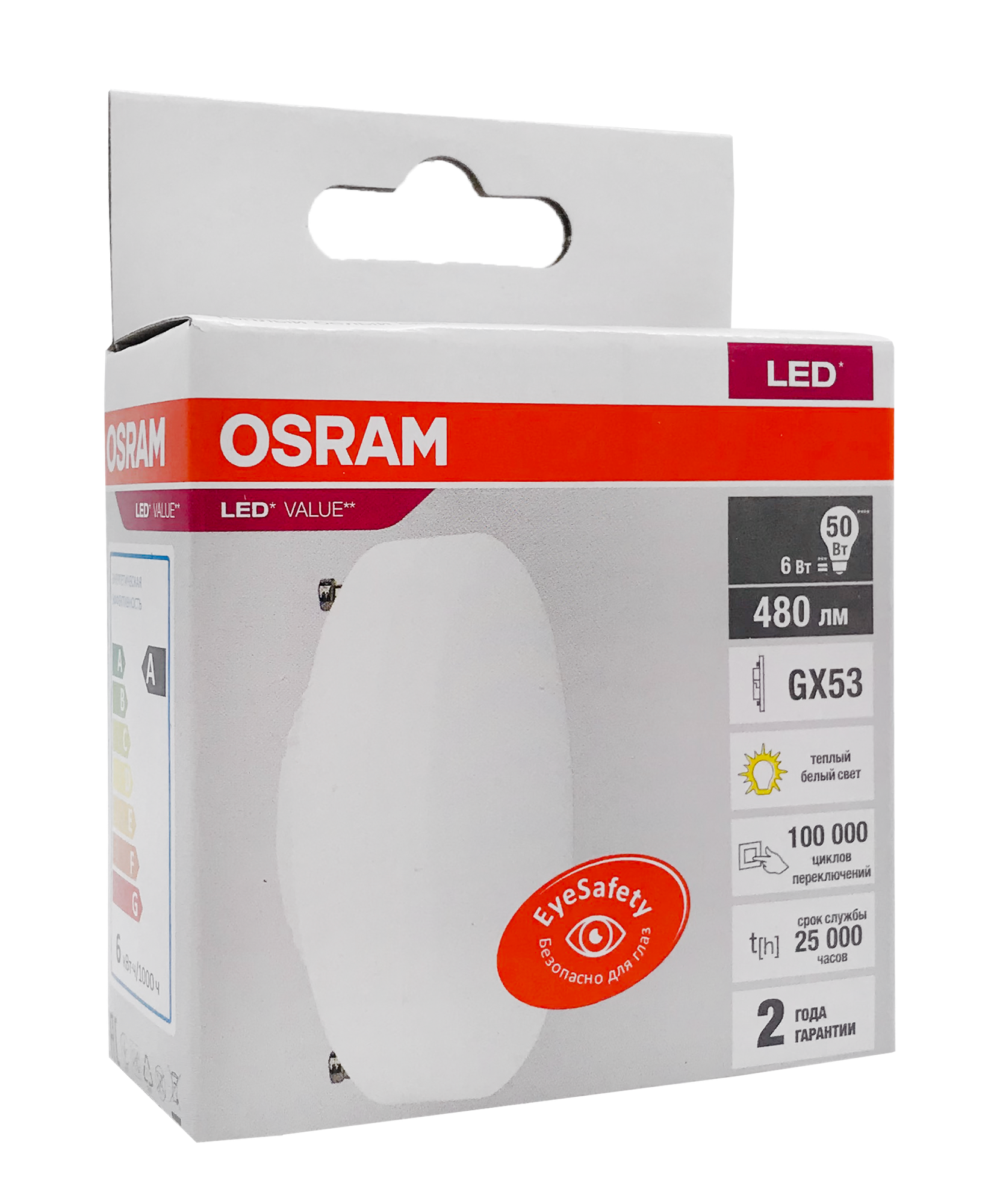 Лампочка светодиодная GX53 6W 230V 830 теплый белый свет OSRAM LV информация: