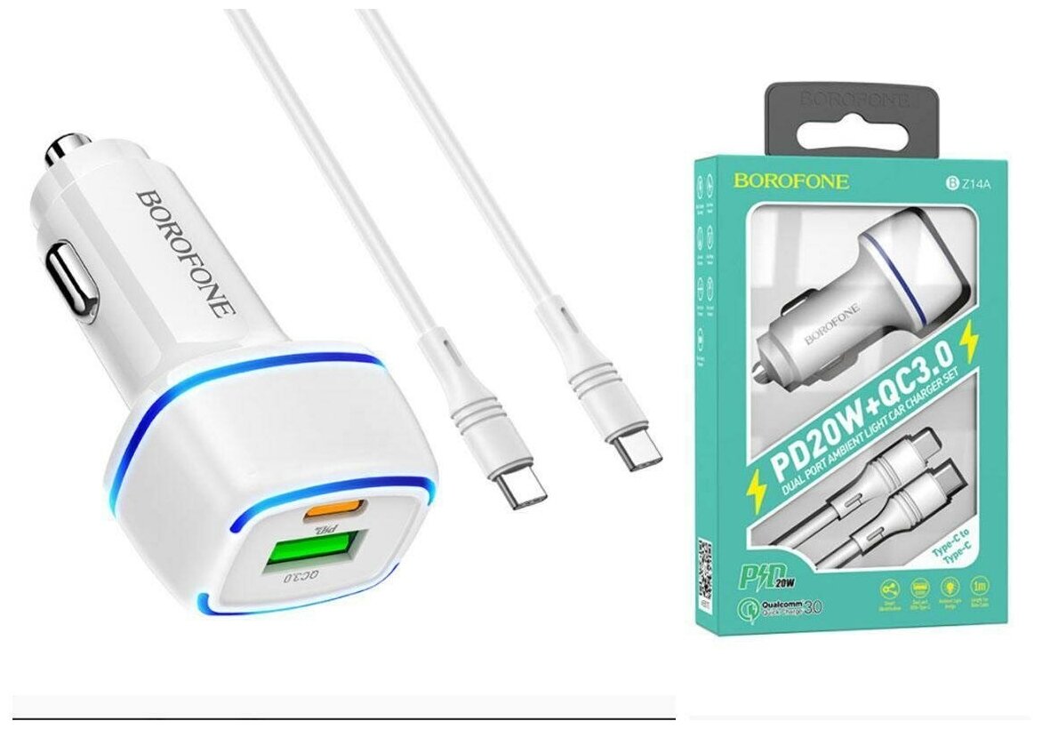 Автомобильное зарядное устройство с 2 USB Borofone, BZ14A, PD 20W QC 3.0,, белый информация: