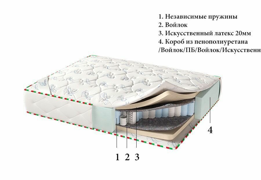 Фабрика Сна Матрас EDMOND, независимые пружины, кокос, средняя жесткость, анатомический, 90х200 см