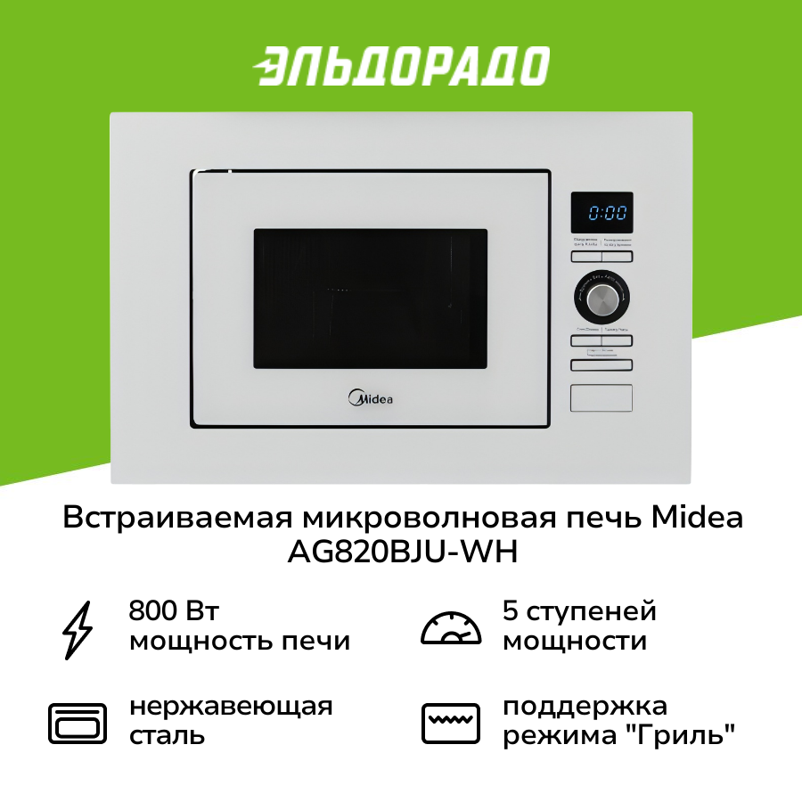 Встраиваемая микроволновая печь Midea AG820BJU-WH информация: