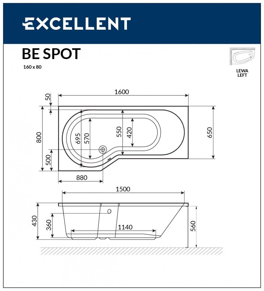 EXCELLENT Акриловая ванна EXCELLENT Be Spot 160x80 (прав.) WAEX.BSP16WH