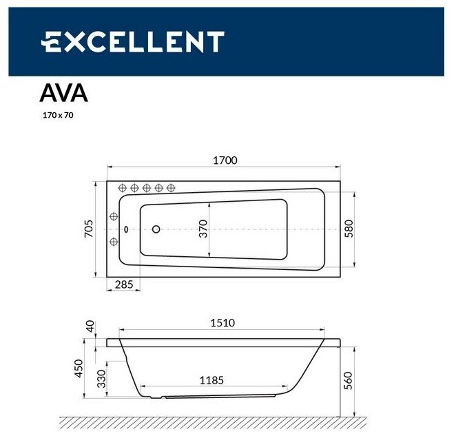 Акриловая ванна EXCELLENT Ava 170x70