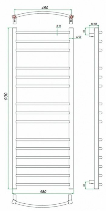 Полотенцесушитель водяной Grota Calma 450x900 информация: