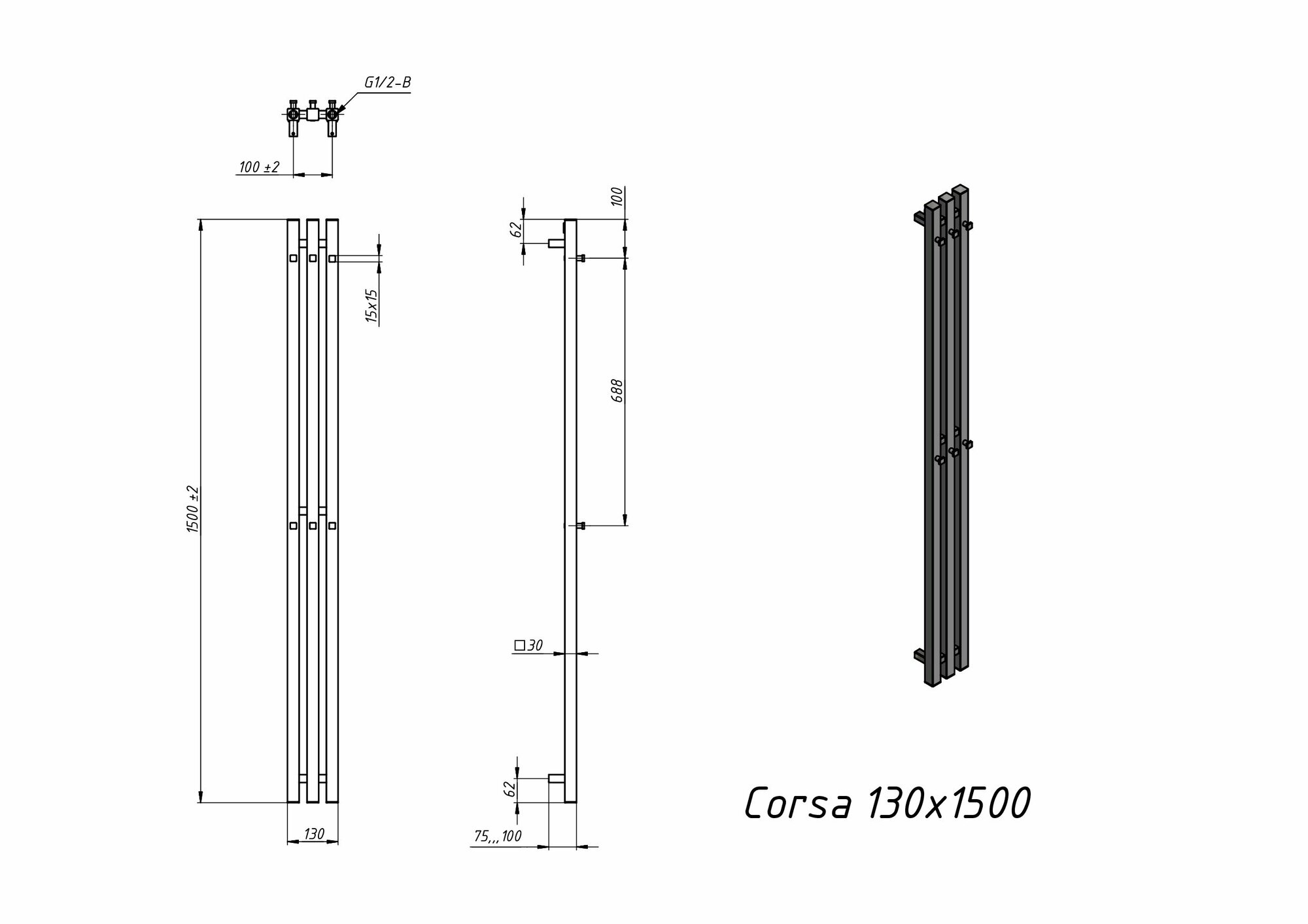 Водяной полотенцесушитель Grota Corsa 130х1500 без крючков информация: