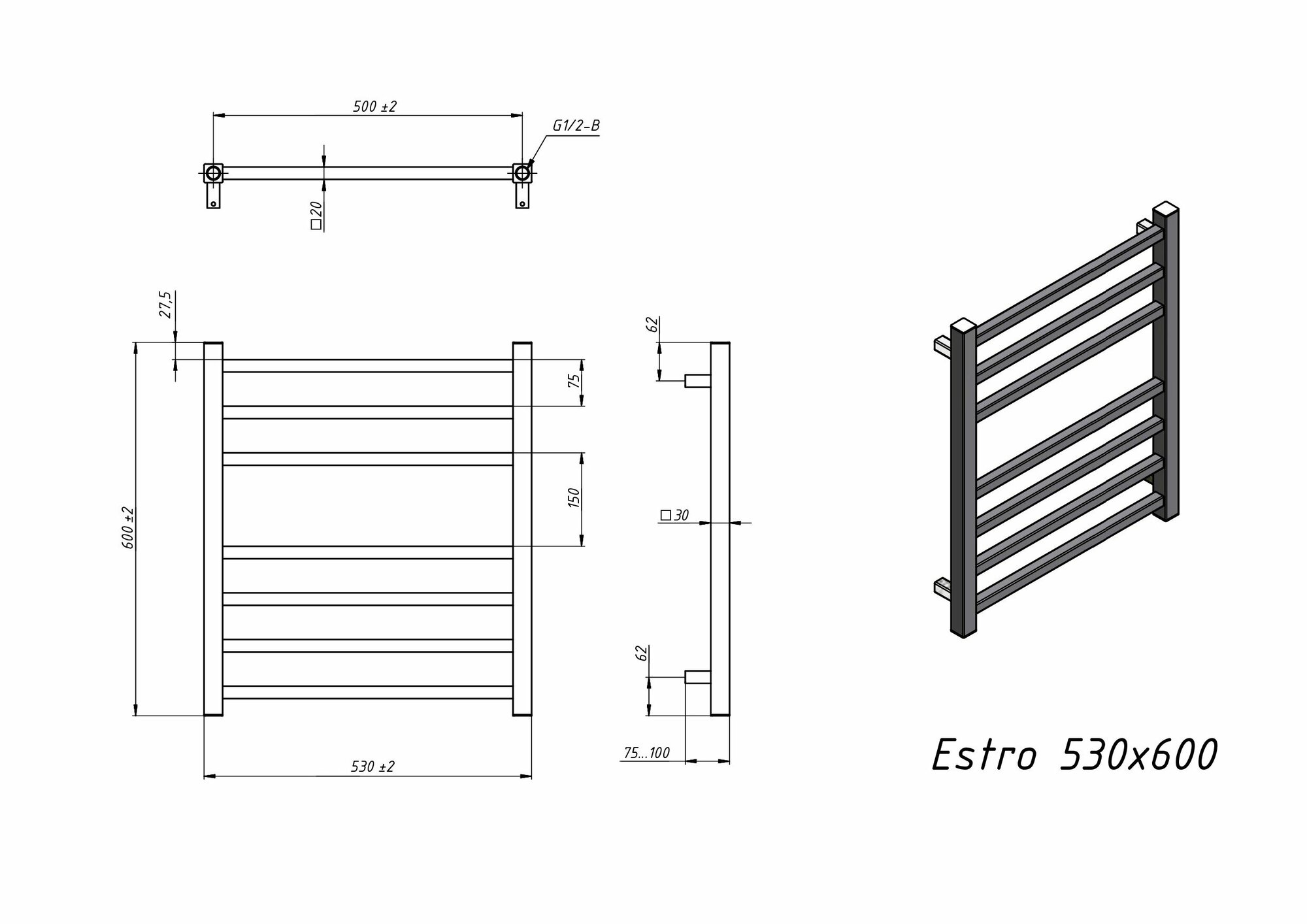 Электрический полотенцесушитель Grota Estro 530x600 информация: