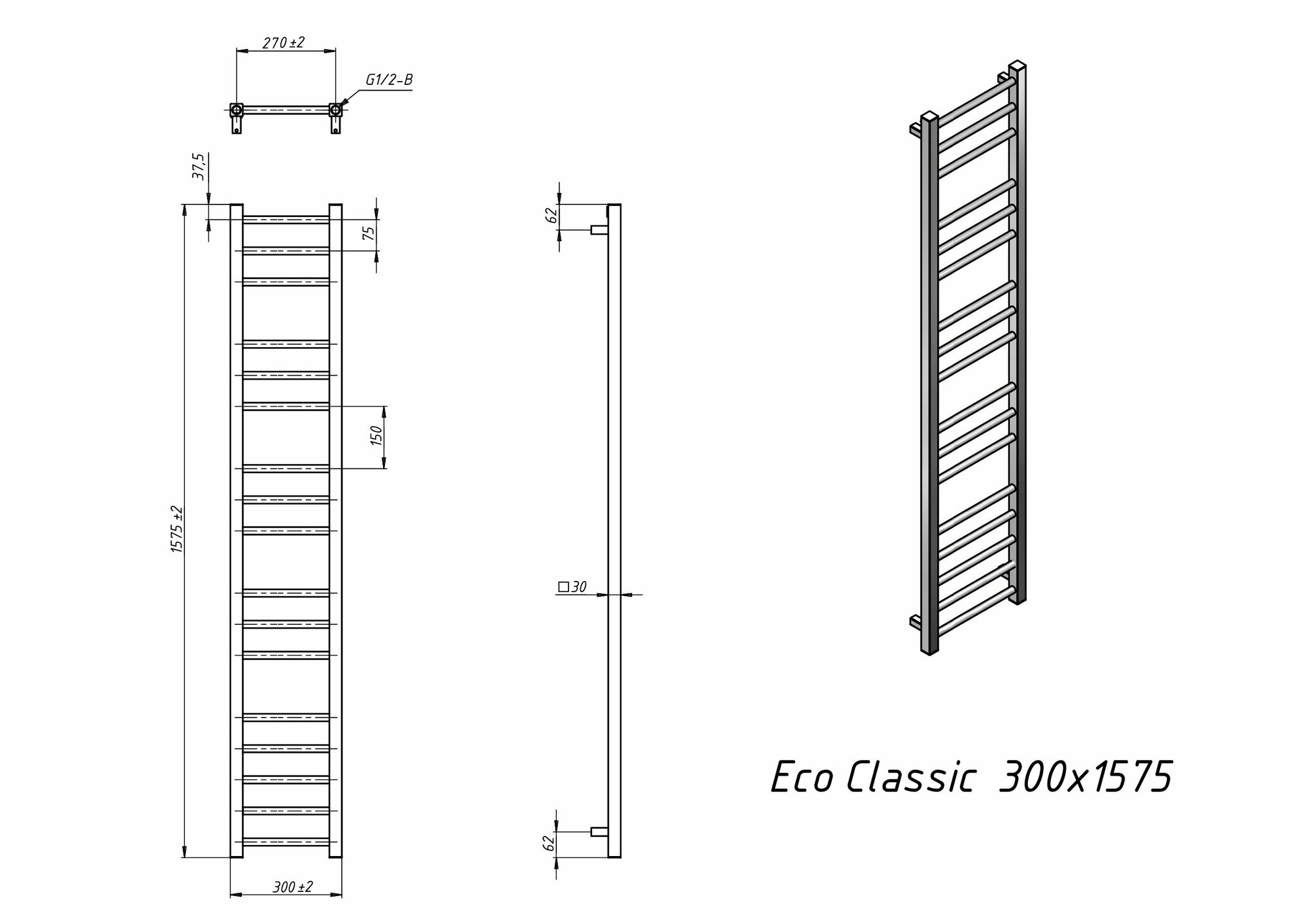 Электрический полотенцесушитель Grota Eco Classic 300х1575 информация: