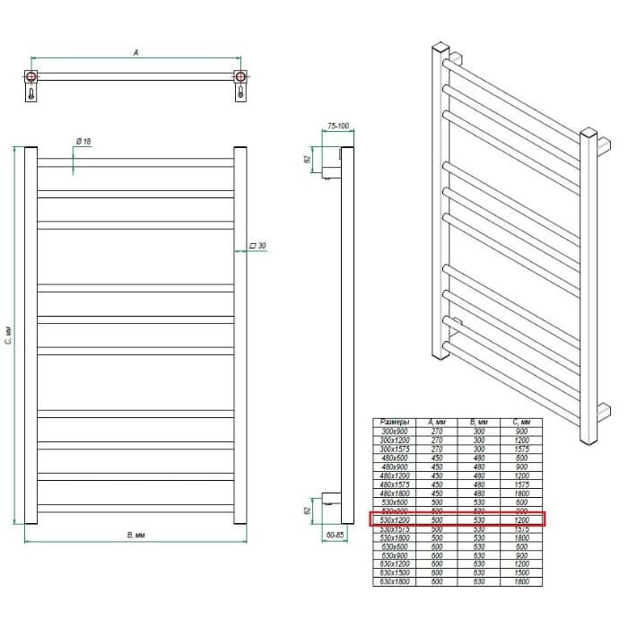 Электрический полотенцесушитель Grota Eco Classic 530x1200 El (белый) информация: