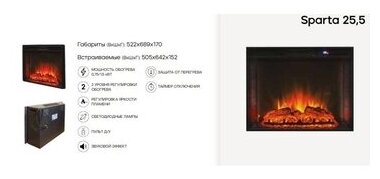 Электрокамин Estella 25.5 WT с Sparta 25,5 информация: