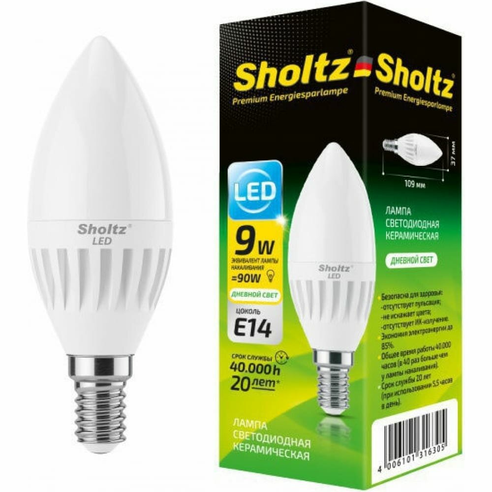 10 цен на Лампа светодиодная энергосберегающая Sholtz 9Вт 220В C37 E14 4200К керамика(Шольц) LEC3163