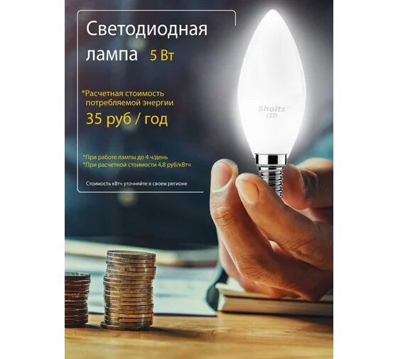 Отзывы на Лампа светодиодная энергосберегающая Sholtz 5Вт 220В C37 E14 4000К стекло филаментная (Шольц) FOC5001