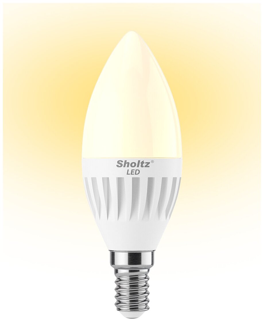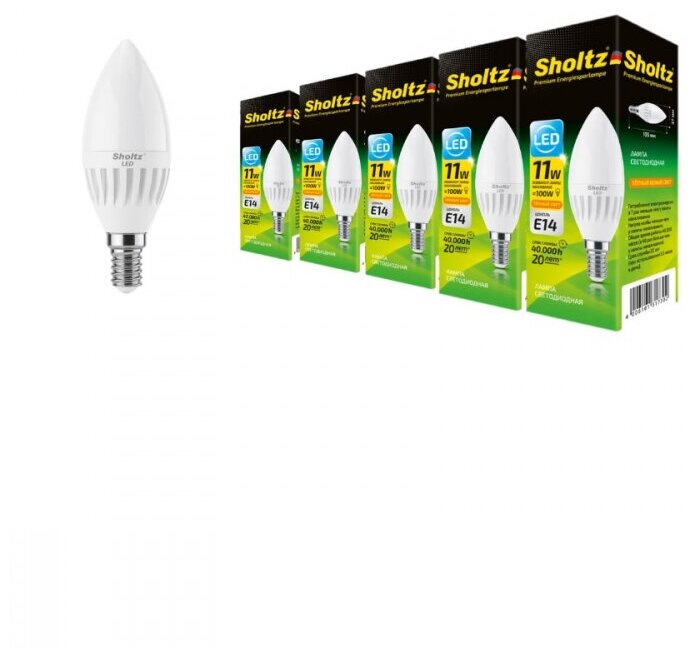 Комплект из 5 светодиодных энергосберегающих ламп Sholtz свеча С37 11Вт E14 2700К 220В керамика (Шольц) LEC3173P информация: