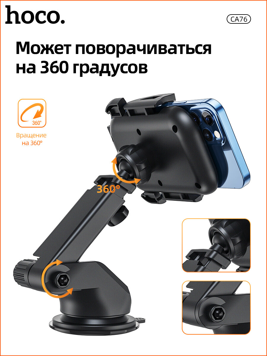Отзывы на Автомобильный держатель HOCO CA76, на приборную панель, с присоской, Чёрный