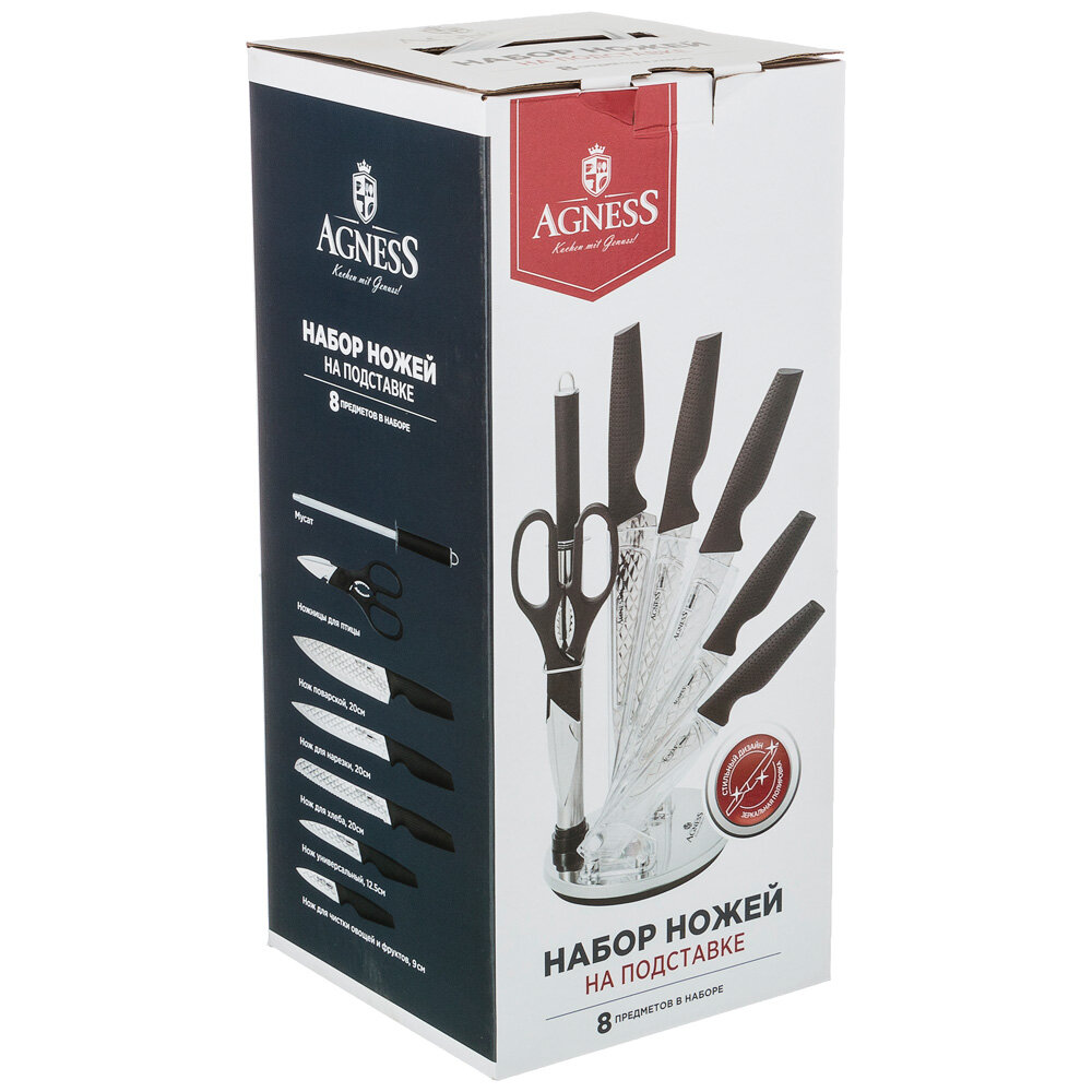 Набор ножей 911-671 agness с ножницами и мусатом на пластиковой подставке, 8 предметов информация: