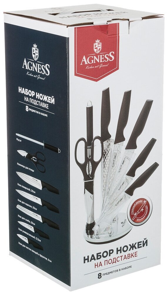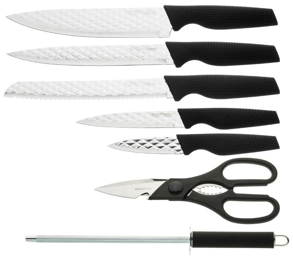 Набор ножей с ножницами и мусатом на пластиковой подставке, 8 предметов Agness (143790) информация: