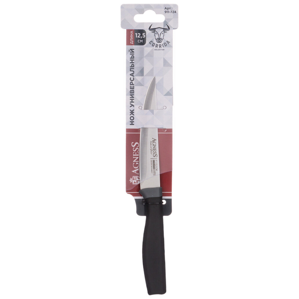 Нож кухонный Agness "Corrida" универсальный, 12,5см, нержавеющая сталь, пластик, черный (911-724)
