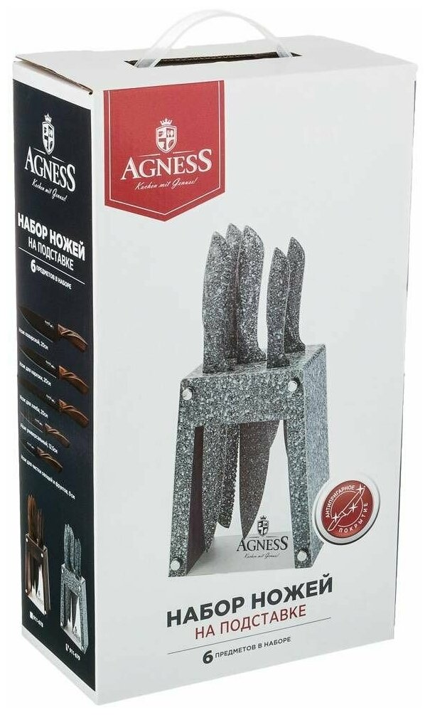 10 цен на Набор ножей AGNESS монблан на пластиковой подставке, 6 предметов