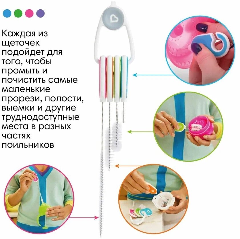 Munchkin ершики для мытья поильников и бутылочек,набор 4 шт. информация:
