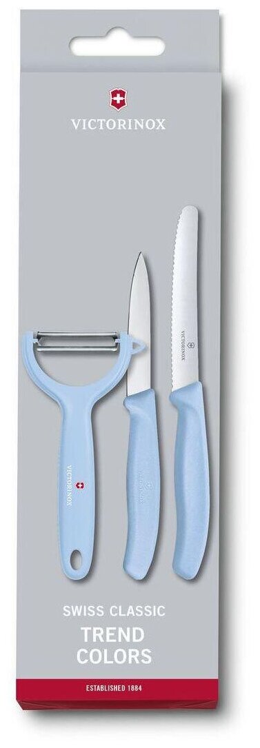 10 цен на Набор Victorinox ножей кухон. Swiss Classic (6.7116.33L22) компл.:2шт овощеч. голубой карт.коробка