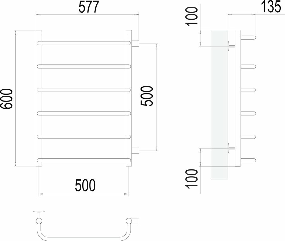 Полотенцесушитель водяной Terminus Стандарт П6 500x600 с боковым подключением 500 информация: