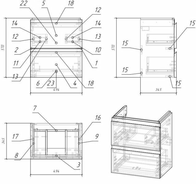 Тумба под ТВ, книжный шкаф, шкаф навесной модульный POINT 33 Серый Графит