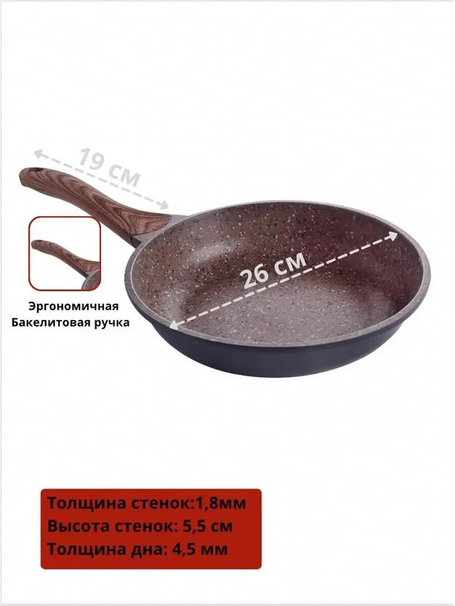 Сковорода "Termico" Granito, диаметр 26 см, антипригарное покрытие Pfulon 3 613 ₽