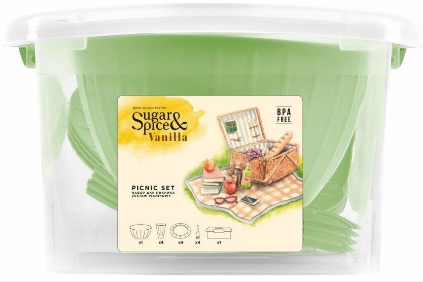 Набор посуды для пикника на 4 персоны (14 предметов) фисташка информация: