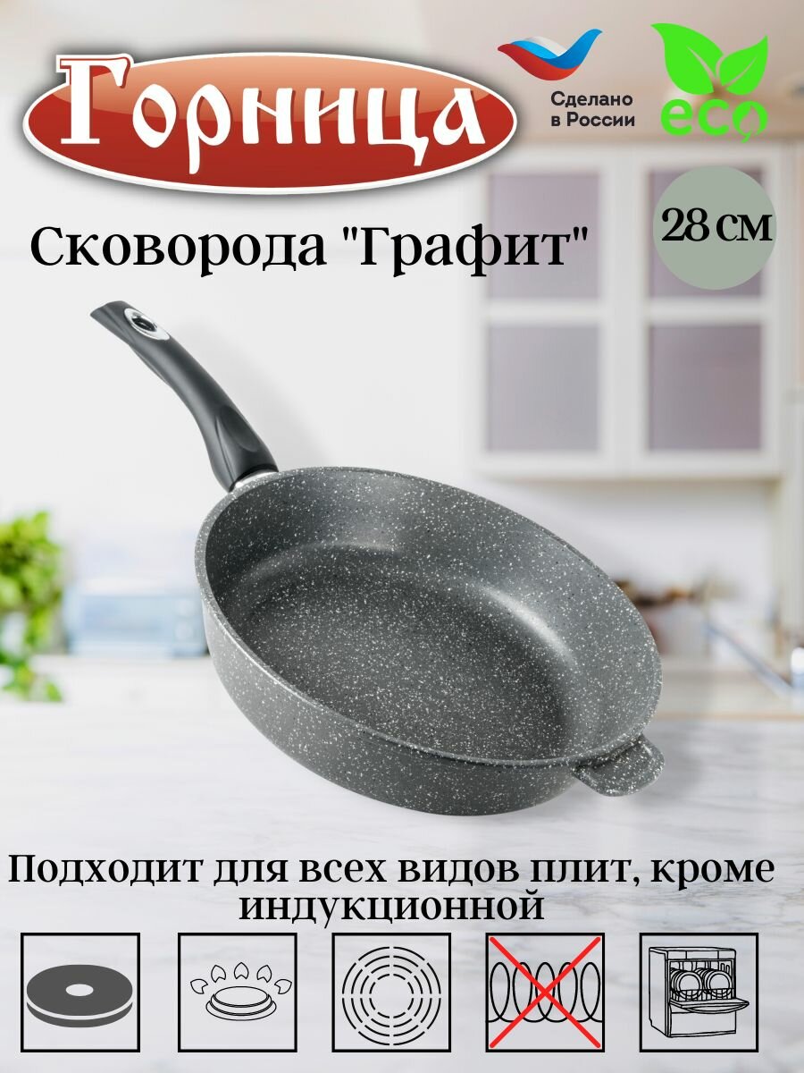 Сковорода 280/70мм с пластиковой ручкой без крышки с2851тм горница информация: