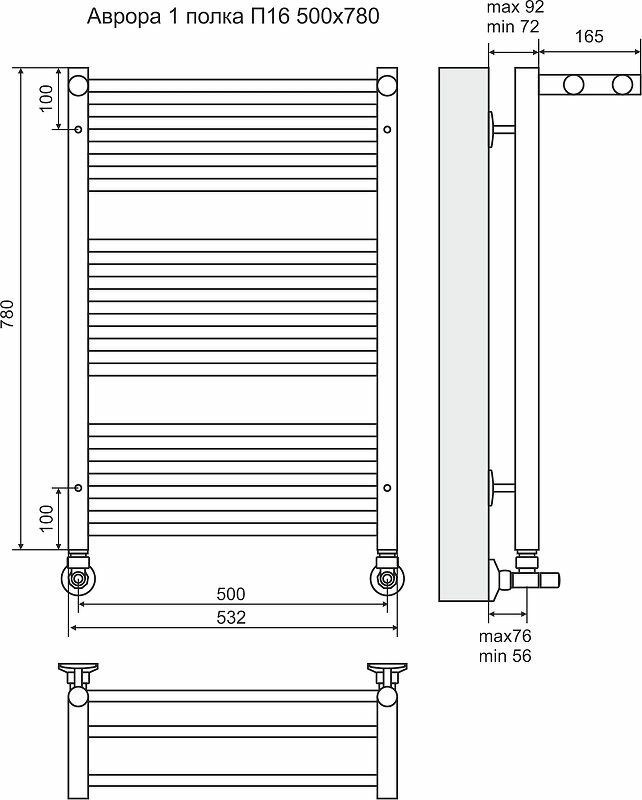 Водяной полотенцесушитель Terminus Аврора П16 500х780 4660059582368 с полкой Хром информация: