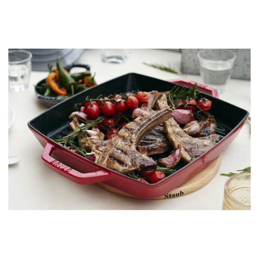 Сковорода-гриль, 23х23 см, с 2 ручками, вишневая Staub информация:
