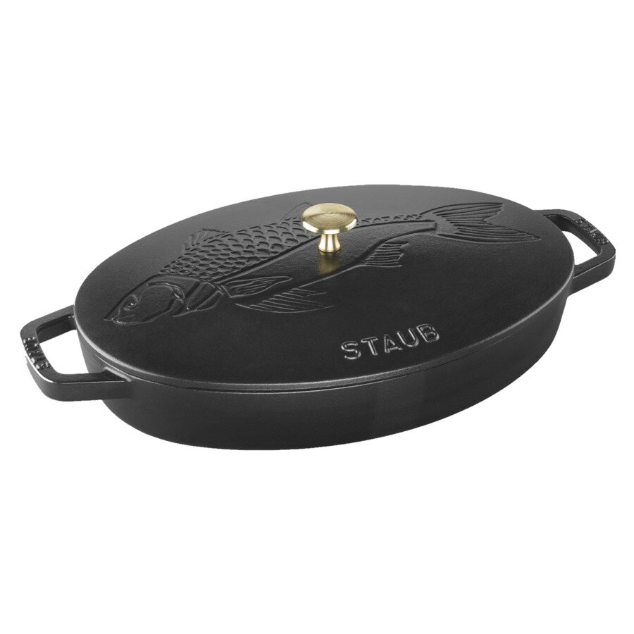 10 цен на Сковорода Staub для рыбы 33 см 2,8 л, черный, чугун, для индукции, духовки