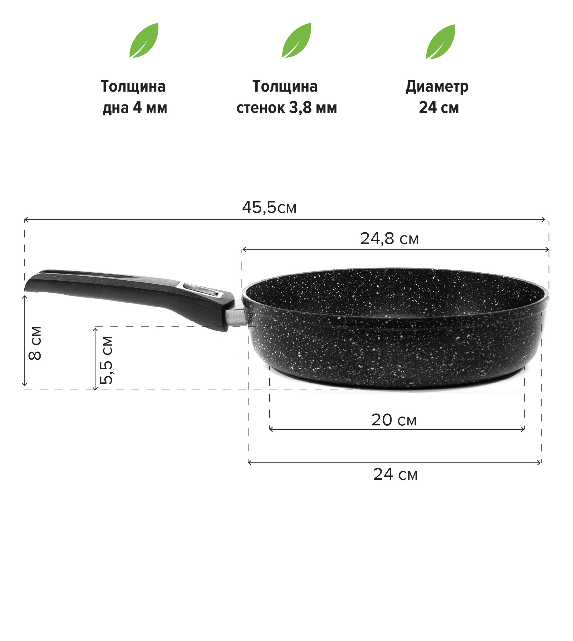 Отзывы на Сковорода алюм. 24 см, Модус, съем. ручка, чер. гранит, катюша, арт. 39010-241-2