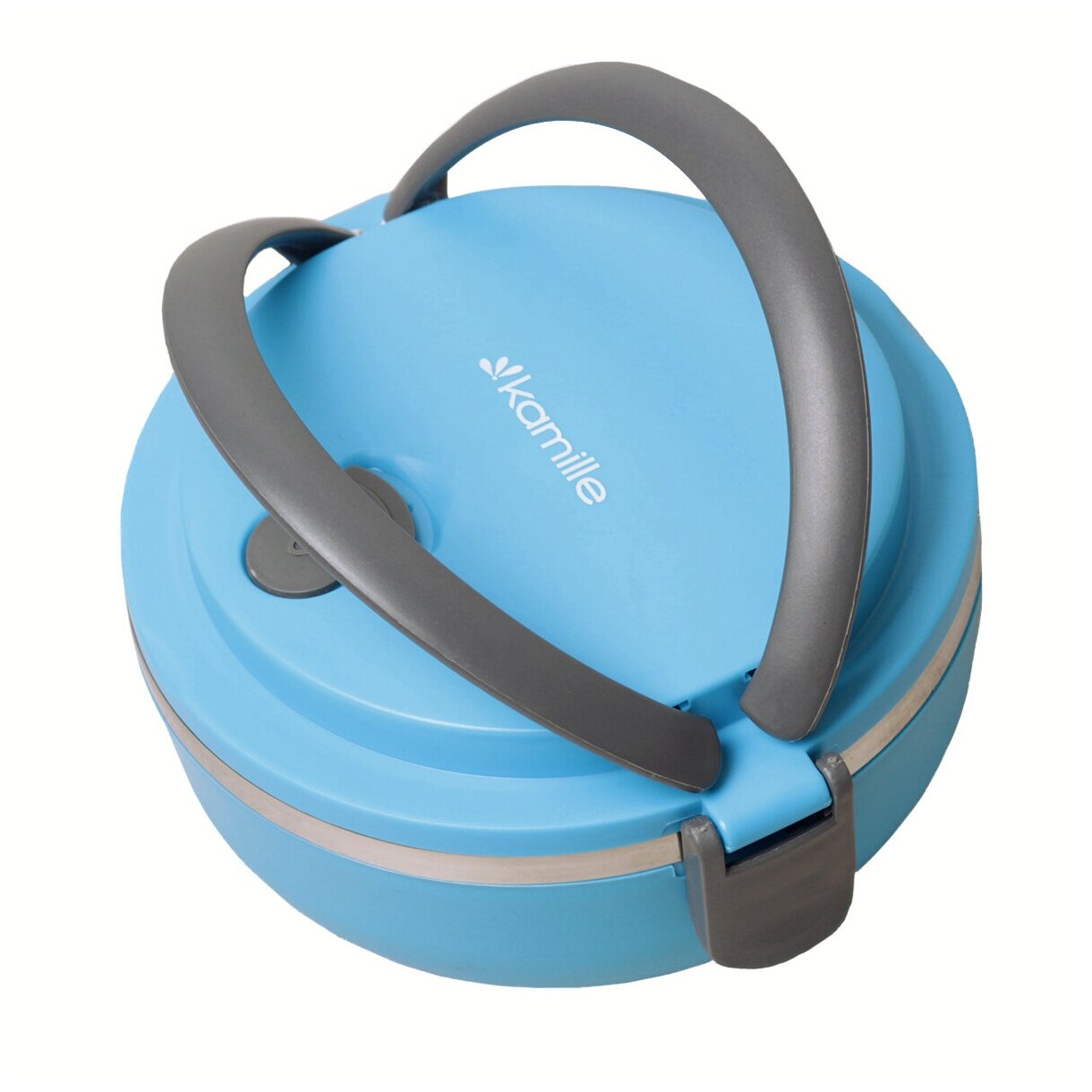 Ланч бокс 700 мл. круглый Kamille КМ-2105 (пластик, нержавеющая сталь) (2105 / голубой)