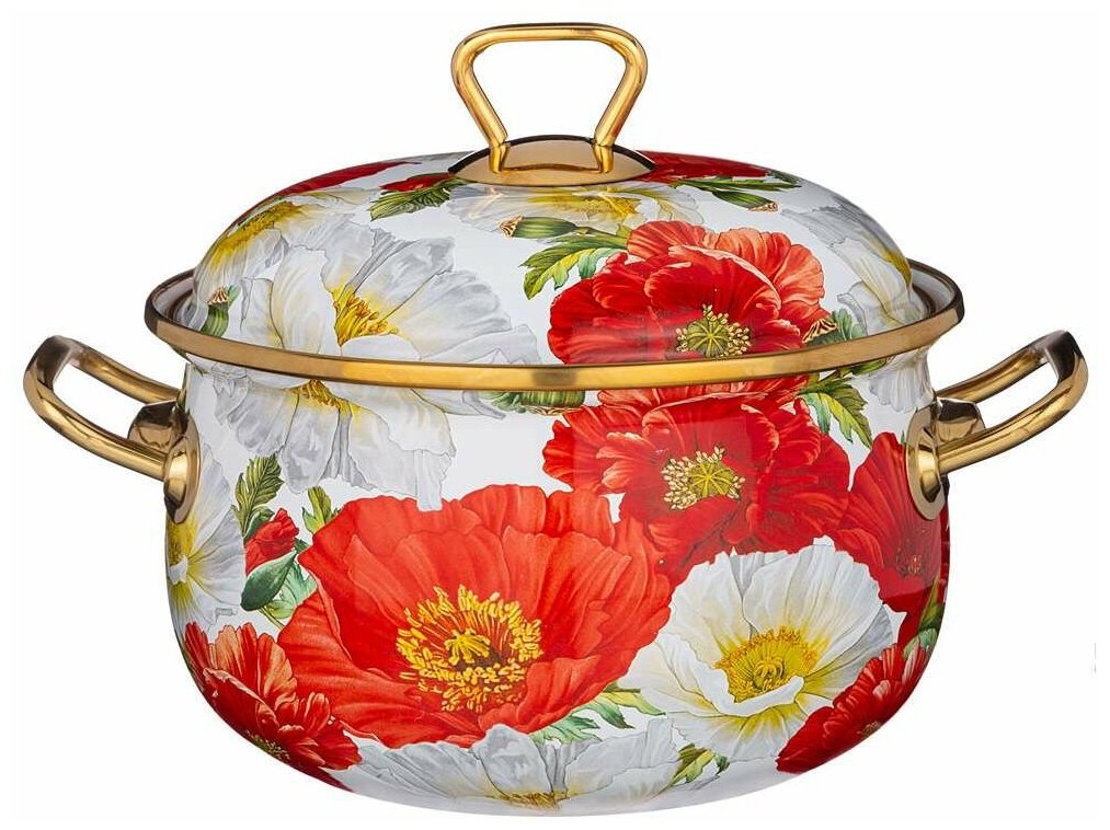 Кастрюля эмалированная с крышкой, маки 2,8л, подходит для индукцион.пл Agness (950-462) информация:
