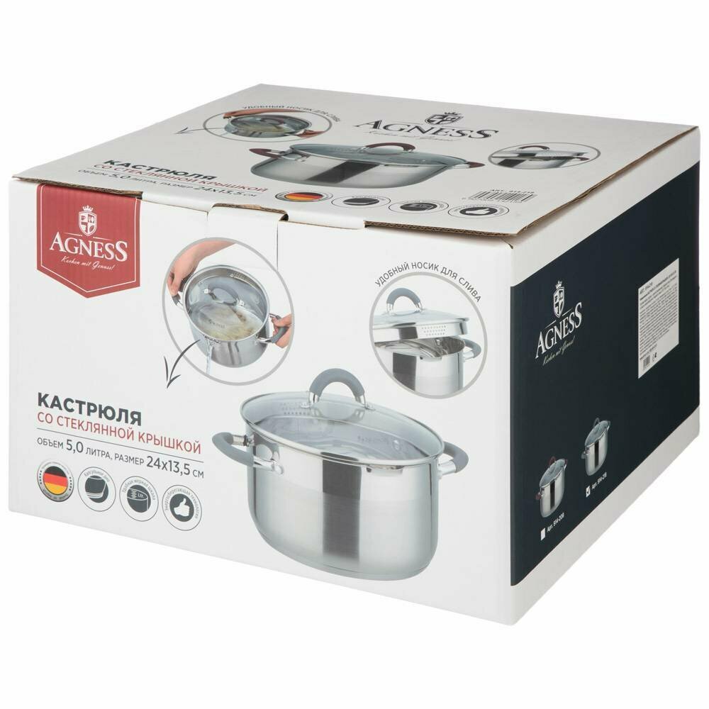 Кастрюля AGNESS PROFI HOME со стеклянной крышкой, 5,0Л 24X13.5 СМ информация: