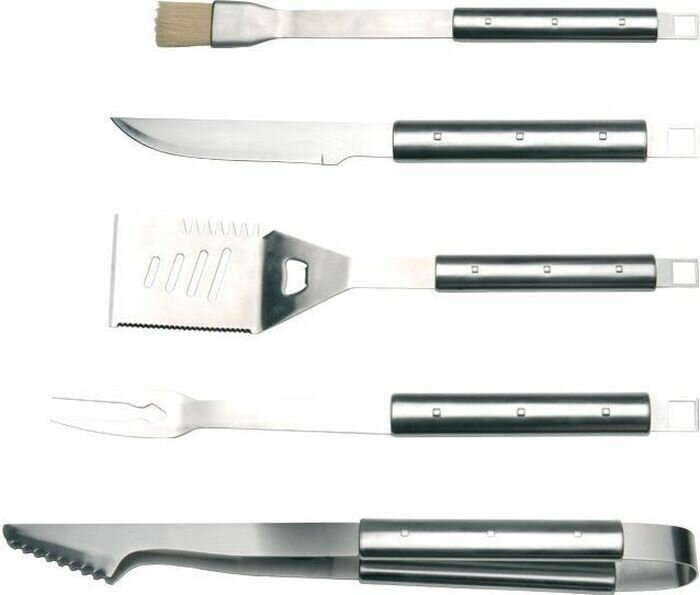 | Длина | вилка для мяса 43.50 см, кисточка 46 см, лопатка 45.50 см, нож для мяса 41 см, щипцы 45.50 см |