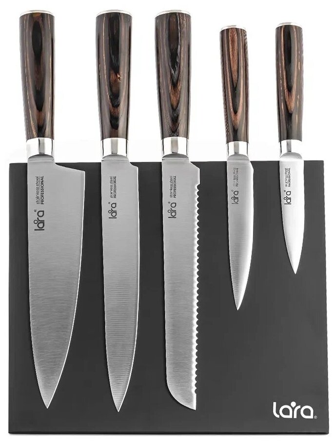 LR05-58 LARA Набор ножей 6 предметов: Подставка (магнитная) +5 ножей, двухслойная сталь