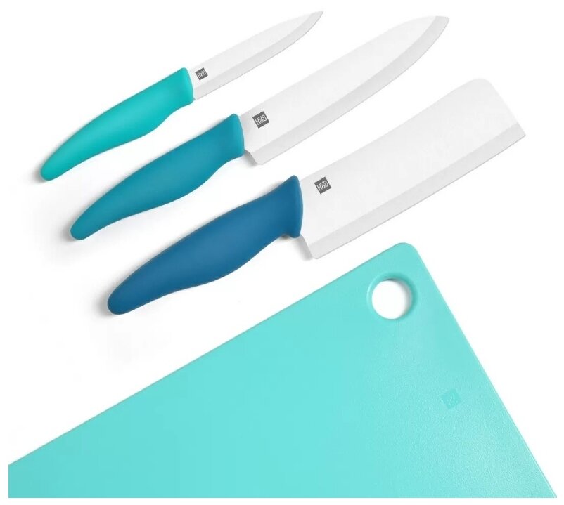 Набор керамических ножей с разделочной доской Huohou Ceramic Knives & Cutting board Set 3+1, HU0020, бирюза